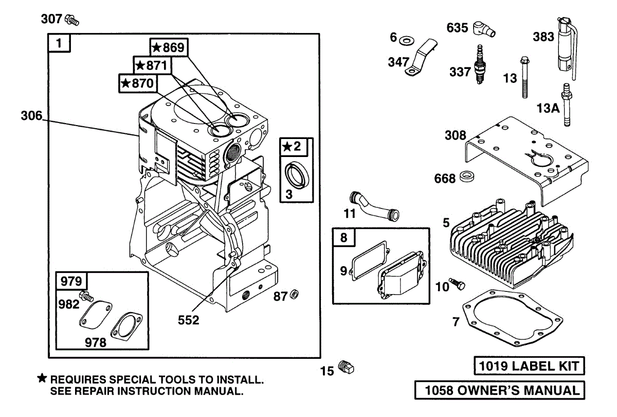 Parts for Briggs & Stratton 254412-1549-99: Cylinder, Head Parts