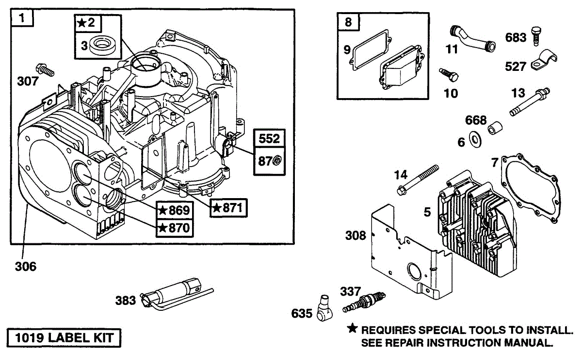 Parts for Briggs & Stratton 254707-0139-01: Cylinder, Head Parts