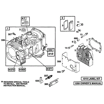 Parts for Briggs & Stratton 255707-4002-99: Cylinder, Head Parts