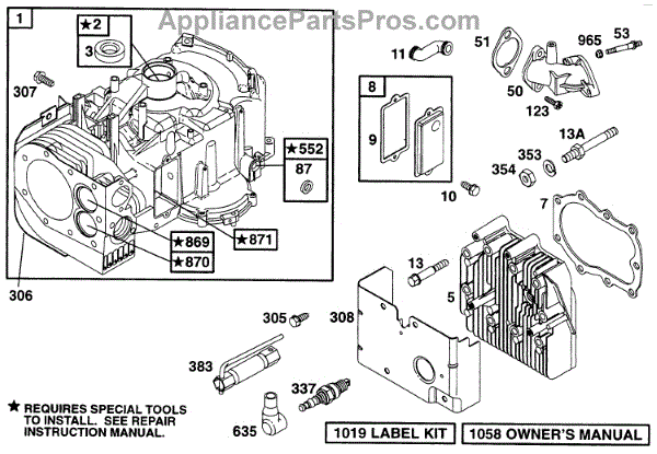 Parts for Briggs & Stratton 282707-0172-01: Cylinder, Head Parts