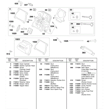 Parts for Briggs & Stratton 185432-8201-70: Cylinder Head, Rocker Cover Parts
