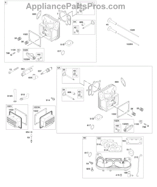 Parts for Briggs & Stratton 445577-3037-G5: Cylinder Head, Rocker Arm Cover, Intake Manifold Parts