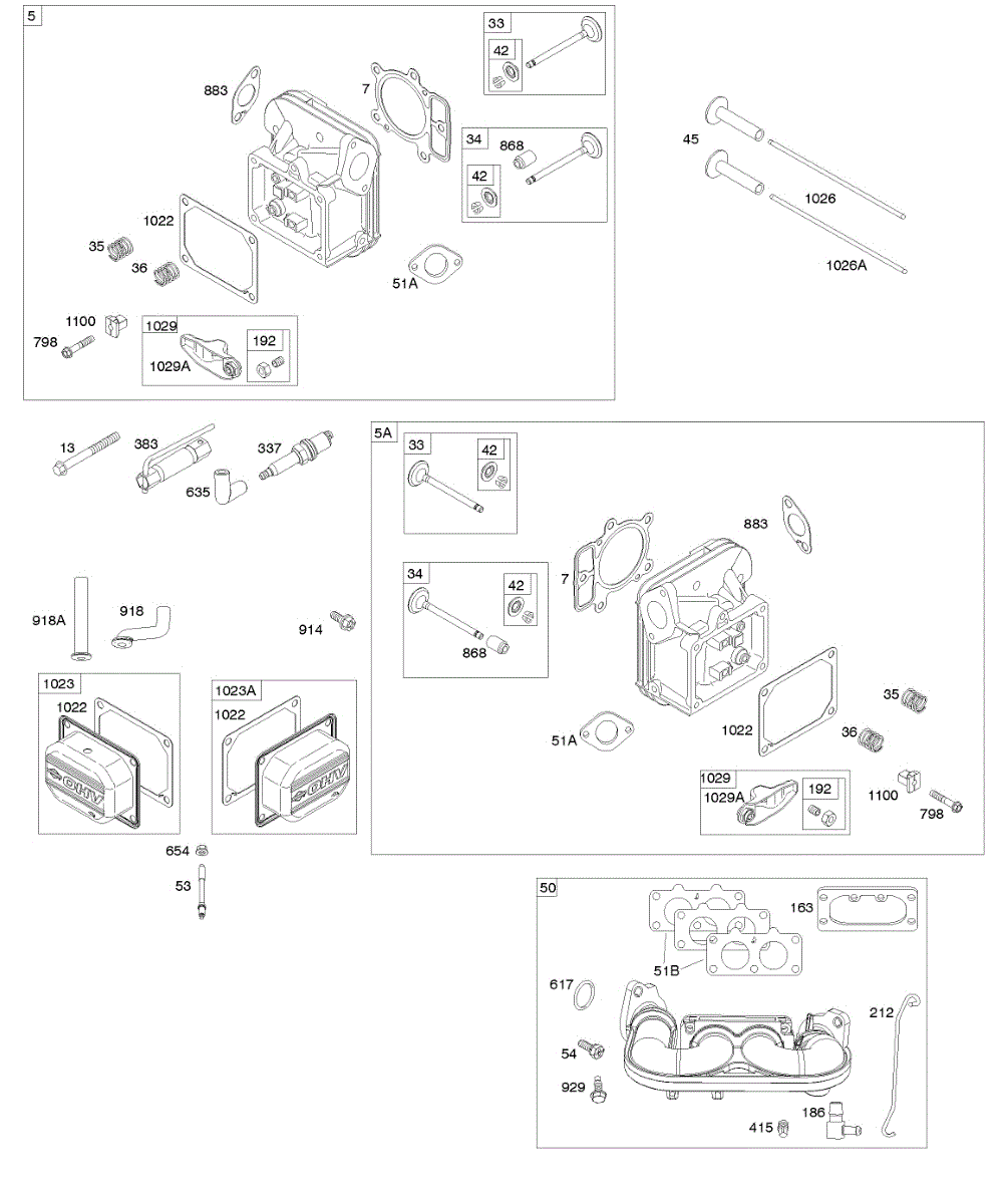 Parts for Briggs & Stratton 445677-1201-G1: Cylinder Head, Rocker Arm Cover, Intake Manifold Parts