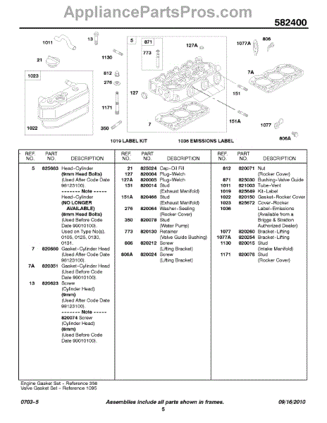 Parts for Briggs & Stratton 582447-0476-E2: Cylinder Head, Rocker Cover Parts