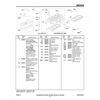 Parts for Briggs & Stratton 582447-0481-E2: Cylinder Head, Rocker Cover Parts
