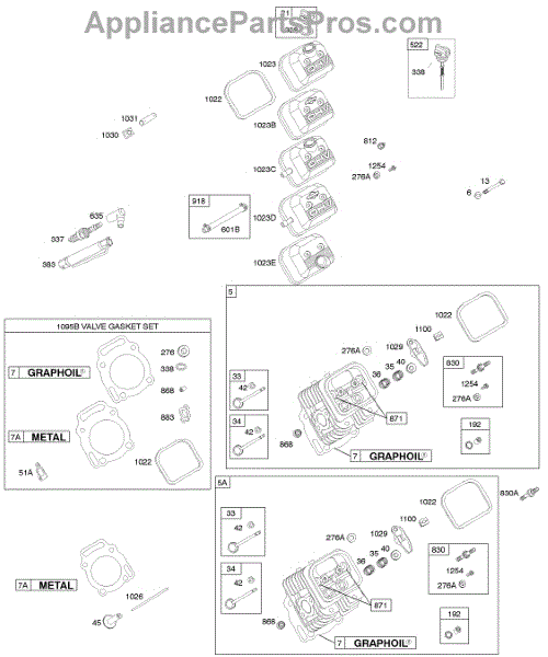 Parts for Briggs & Stratton 294447-0377-01: Cylinder Head, Valve Covers, Valve Gasket Set Parts