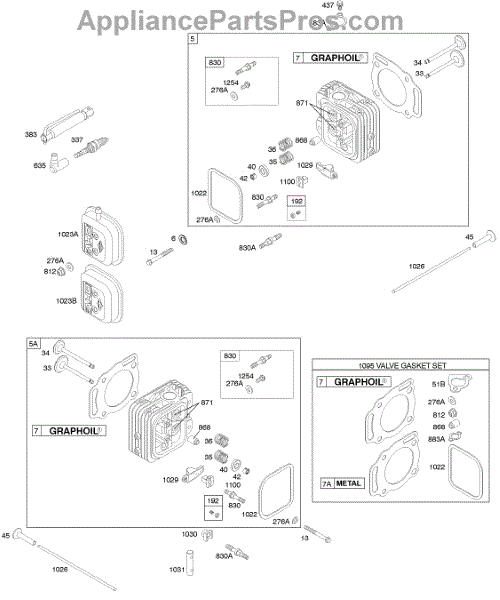 Parts for Briggs & Stratton 294777-0412-01: Cylinder Head, Valve Gasket Set Parts