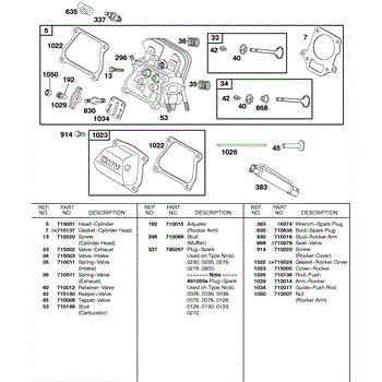 Parts for Briggs & Stratton 085432-0130-01: Cylinder Head, Valves Parts