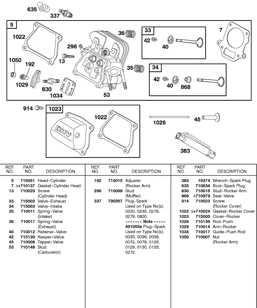 Parts for Briggs & Stratton 085432-0278-B1: Cylinder Head, Valves Parts