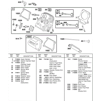 Parts for Briggs & Stratton 115432-0131-01: Cylinder Head, Valves Parts