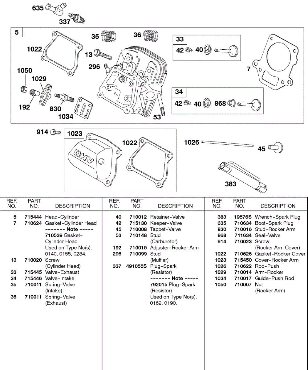 Parts for Briggs & Stratton 138437-0084-A1: Cylinder Head, Valves Parts
