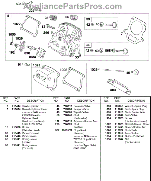 Parts for Briggs & Stratton 138437-0284-B1: Cylinder Head, Valves Parts