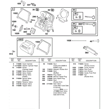 Parts for Briggs & Stratton 187432-0110-E1: Cylinder Head, Valves Parts