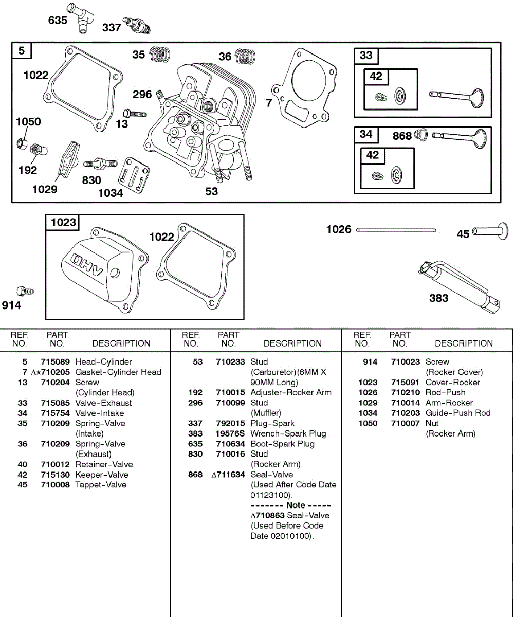 Parts for Briggs & Stratton 187432-0114-B1: Cylinder Head, Valves Parts