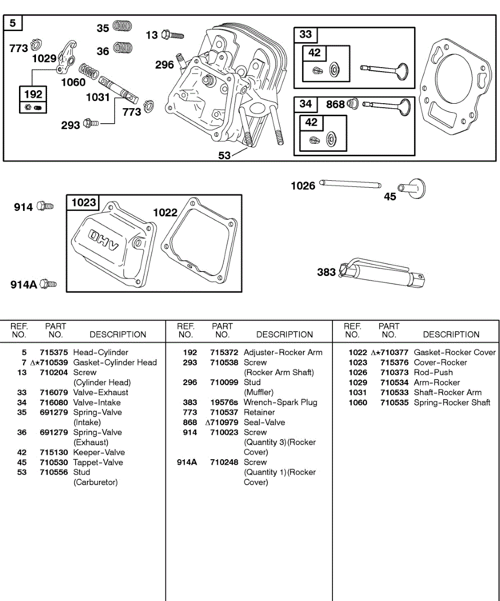 Parts for Briggs & Stratton 235432-0083-01: Cylinder Head, Valves Parts