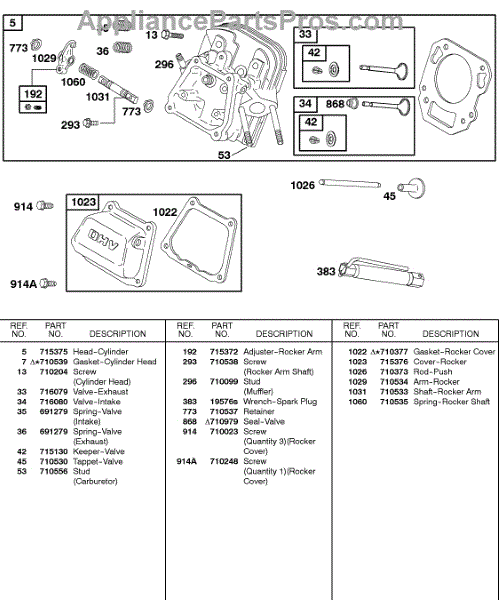 Parts for Briggs & Stratton 235437-0280-E9: Cylinder Head, Valves Parts