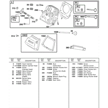 Parts for Briggs & Stratton 247432-0113-B1: Cylinder Head, Valves Parts