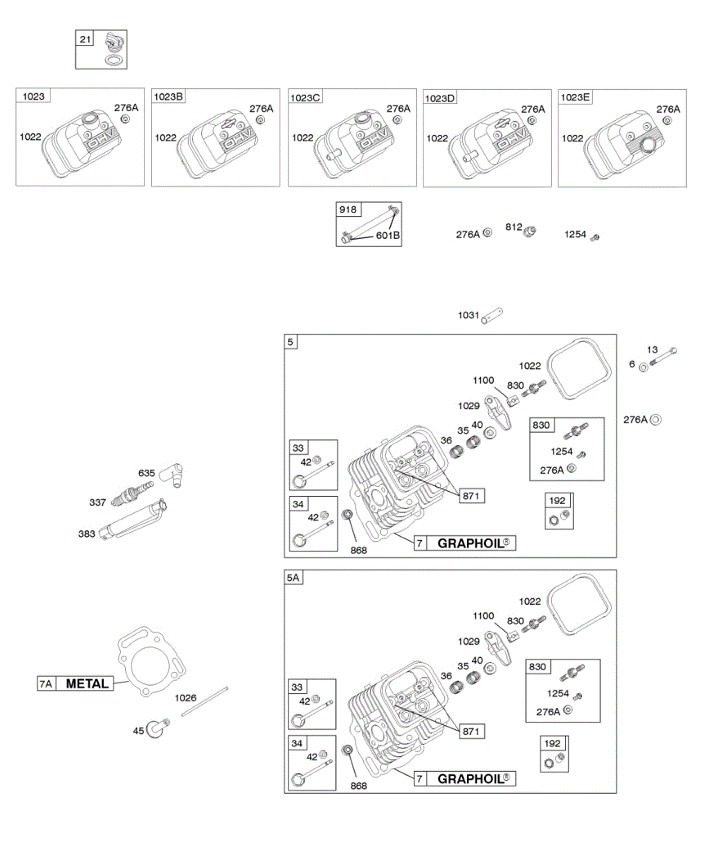 Parts for Briggs & Stratton 303447-0051-02: Cylinder Head, Valves, Rocker Covers Parts