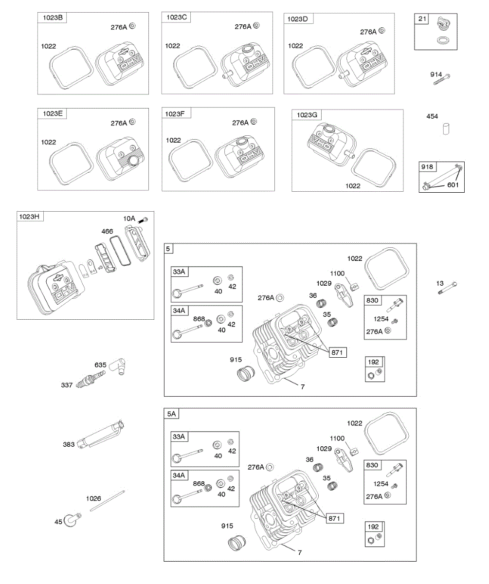 Parts for Briggs & Stratton 356447-0005-G1: Cylinder Head, Valves, Valve Covers Parts