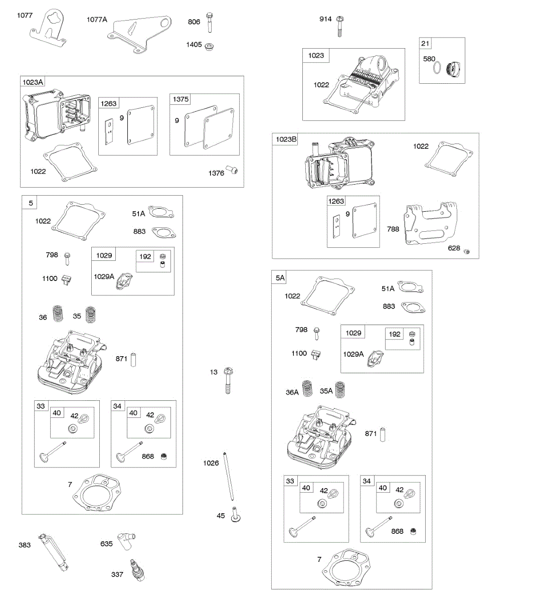 Parts for Briggs & Stratton 542777-1113-E1: Cylinder Heads, Rocker Covers Parts