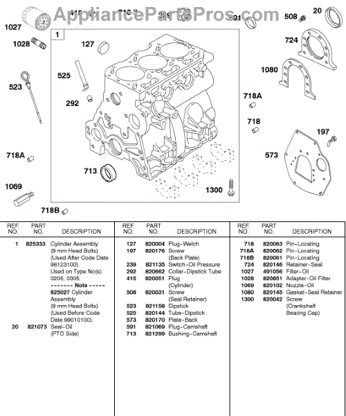 Parts for Briggs & Stratton 430447-0205-E2: Cylinder, Lubrication, Back Plate Parts