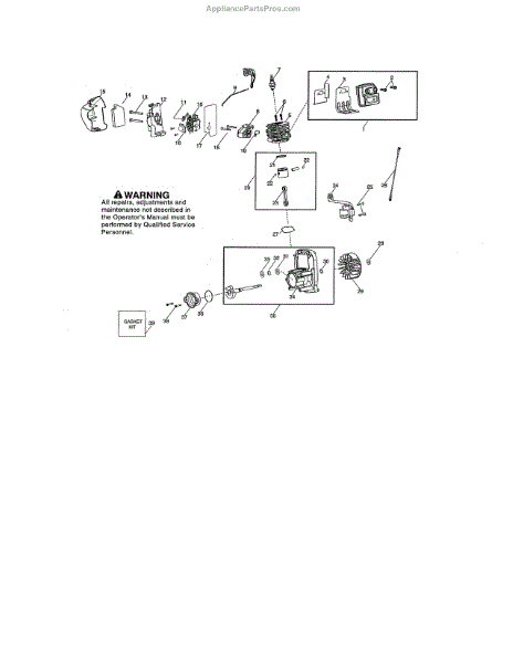 This genuine OEM replacement part is a rebuild kit of various gaskets used in a gas-powered leaf blower engine. This kit includes a crankshaft gasket, a carburetor gasket and carburetor adapter gasket, a cylinder base gasket, and a muffler shield. Gaskets act like a seal between different parts of an engine that keeps different liquids and gasses from passing into the wrong section of the engine. Gaskets can become worn out and crack or shrink over time through repeated use and exposure to exhaust and heat in the engine. A common sign of a fault gasket is if your engine is not running at full capacity or if it stalls out shortly after ignition. Changing out a gasket should not be a difficult job, but it will depend on which gasket you are replacing. Making this repair will require a screwdriver and set of pliers. This gasket rebuild kit is compatible with Poulan, Weed Eater, and Husqvarna gas powered leaf blowers. These gaskets are made of a mix of plastic and rubber. This kit ships individually and is sourced directly from its original manufacturer.