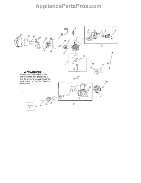 This genuine OEM replacement part is a rebuild kit of various gaskets used in a gas-powered leaf blower engine. This kit includes a crankshaft gasket, a carburetor gasket and carburetor adapter gasket, a cylinder base gasket, and a muffler shield. Gaskets act like a seal between different parts of an engine that keeps different liquids and gasses from passing into the wrong section of the engine. Gaskets can become worn out and crack or shrink over time through repeated use and exposure to exhaust and heat in the engine. A common sign of a fault gasket is if your engine is not running at full capacity or if it stalls out shortly after ignition. Changing out a gasket should not be a difficult job, but it will depend on which gasket you are replacing. Making this repair will require a screwdriver and set of pliers. This gasket rebuild kit is compatible with Poulan, Weed Eater, and Husqvarna gas powered leaf blowers. These gaskets are made of a mix of plastic and rubber. This kit ships individually and is sourced directly from its original manufacturer.