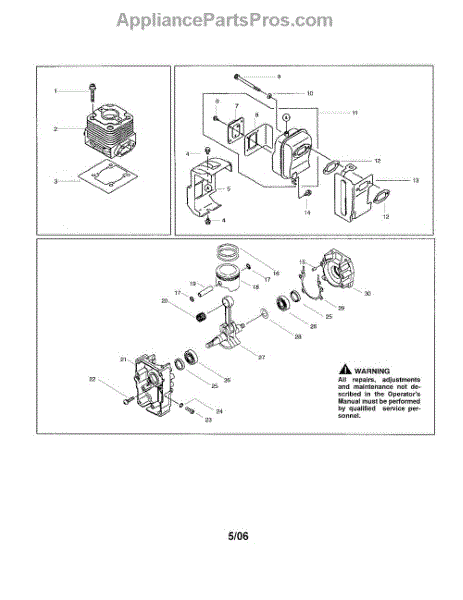 Parts for Poulan BP402LE: Cylinder / Muffler / Crankshaft Parts