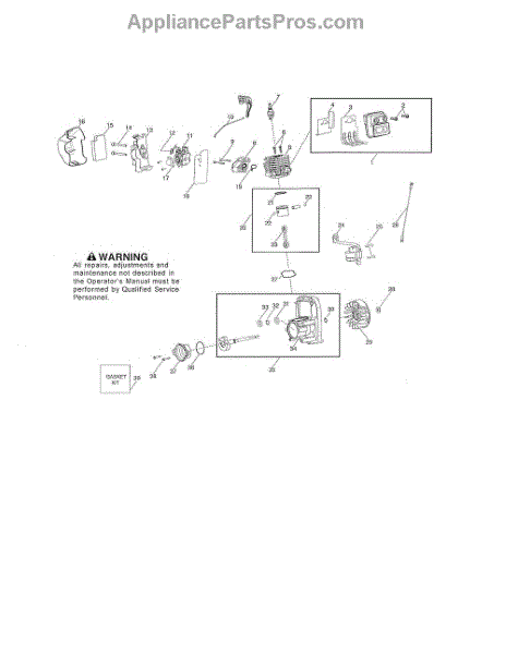 This genuine OEM replacement part is a rebuild kit of various gaskets used in a gas-powered leaf blower engine. This kit includes a crankshaft gasket, a carburetor gasket and carburetor adapter gasket, a cylinder base gasket, and a muffler shield. Gaskets act like a seal between different parts of an engine that keeps different liquids and gasses from passing into the wrong section of the engine. Gaskets can become worn out and crack or shrink over time through repeated use and exposure to exhaust and heat in the engine. A common sign of a fault gasket is if your engine is not running at full capacity or if it stalls out shortly after ignition. Changing out a gasket should not be a difficult job, but it will depend on which gasket you are replacing. Making this repair will require a screwdriver and set of pliers. This gasket rebuild kit is compatible with Poulan, Weed Eater, and Husqvarna gas powered leaf blowers. These gaskets are made of a mix of plastic and rubber. This kit ships individually and is sourced directly from its original manufacturer.