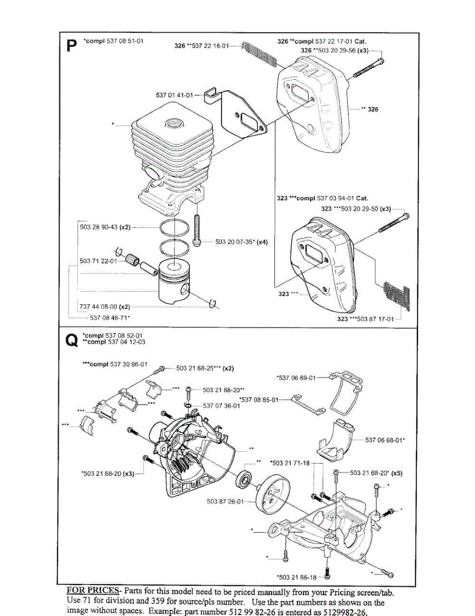 Parts for Husqvarna 326C: Cylinder / Muffler / Housing Parts