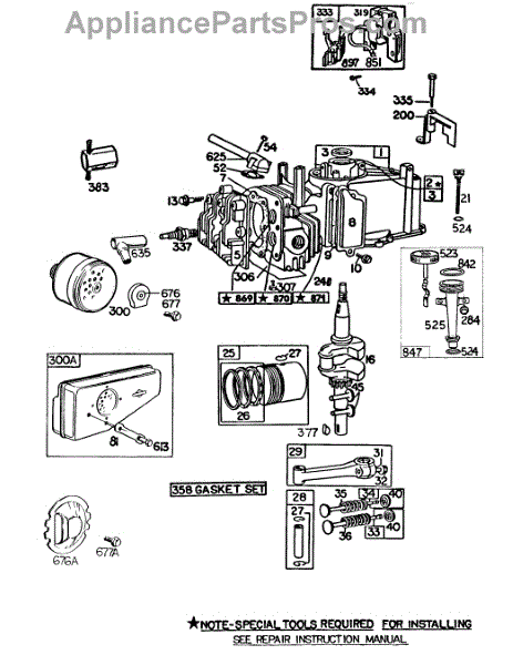 Parts for Briggs & Stratton 093587-5118-99: Cylinder,Mufflers,Piston Grp Parts