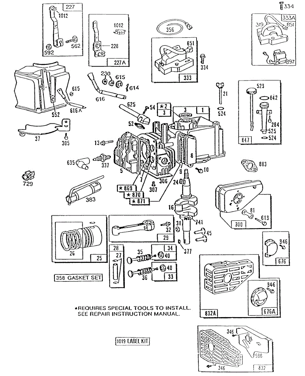 Parts for Briggs & Stratton 094908-0638-01: Cylinder,Mufflers,Piston Grp Parts