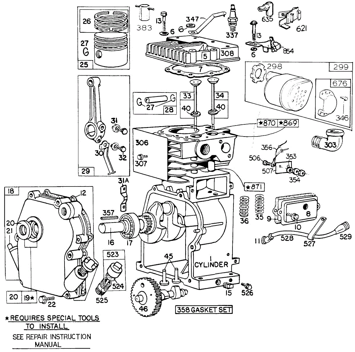 Parts for Briggs & Stratton 111212-0115-99: Cylinder,Mufflers,Piston Grp Parts