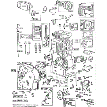 Parts for Briggs & Stratton 254427-5034-99: Cylinder,Mufflers,Piston Grp Parts