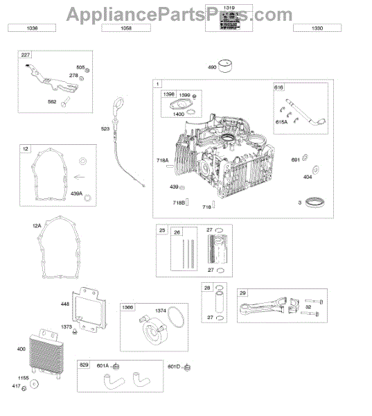 Parts for Briggs & Stratton 542777-1113-E1: Cylinder, Oil Cooler, Piston / Rings / Connecting Rod Parts