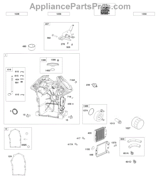 Parts for Briggs & Stratton 611477-0113-E1: Cylinder, Oil Cooler, Governor Control Bracket Parts