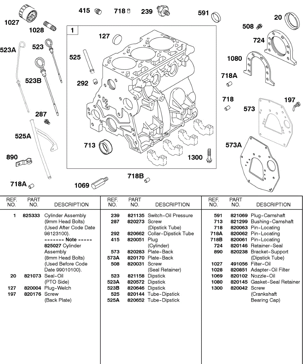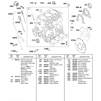 Parts for Briggs & Stratton 433447-0115-01: Cylinder, Oil Filter, Back Plates, Dipsticks Parts