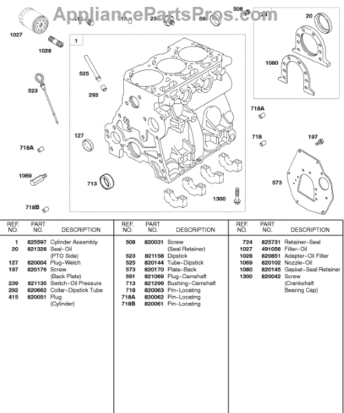Parts for Briggs & Stratton 584447-0210-E2: Cylinder, Oil Filter Parts