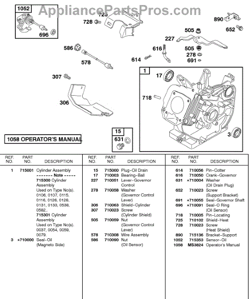Parts for Briggs & Stratton 115432-0080-02: Cylinder, Oil Sensor Parts