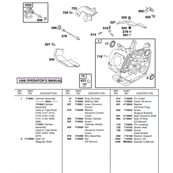Parts for Briggs & Stratton 115462-0128-01: Cylinder, Oil Sensor Parts