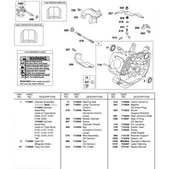 Parts for Briggs & Stratton 138432-0047-B1: Cylinder, Oil Sensor, Manuals Parts