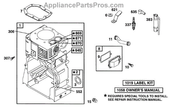 Parts for Briggs & Stratton 252417-0527-01: Cylinder Parts