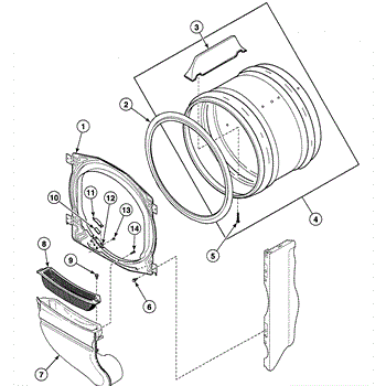 This is the rotating dryer cylinder assembly. Replacing a dented, rusted, or out-of-round cylinder restores smooth tumbling and helps prevent snags, noise, and uneven drying performance.