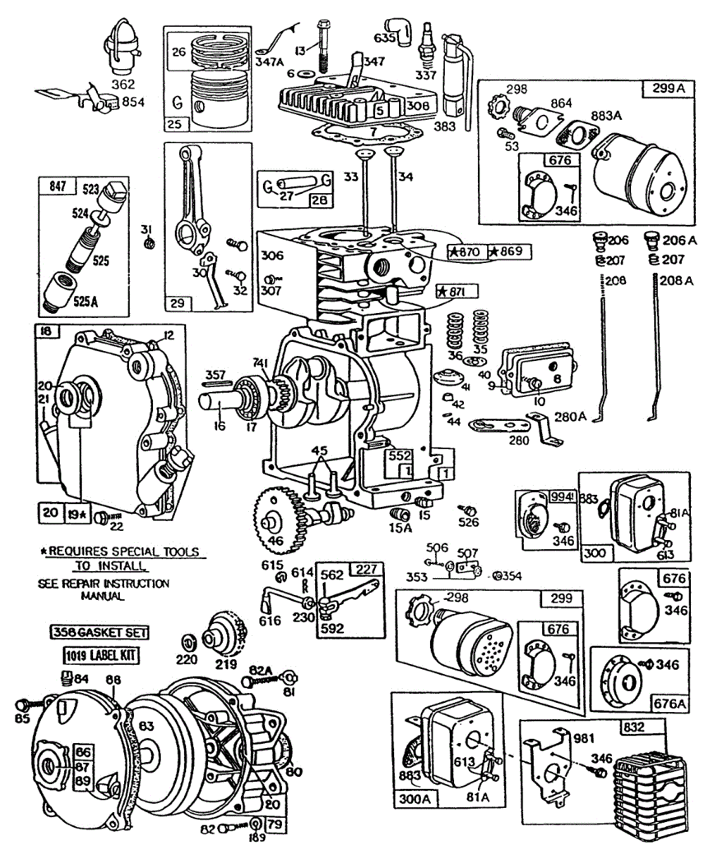 Parts for Briggs & Stratton 082252-0126-01: Cylinder, Piston, Mufflers Parts