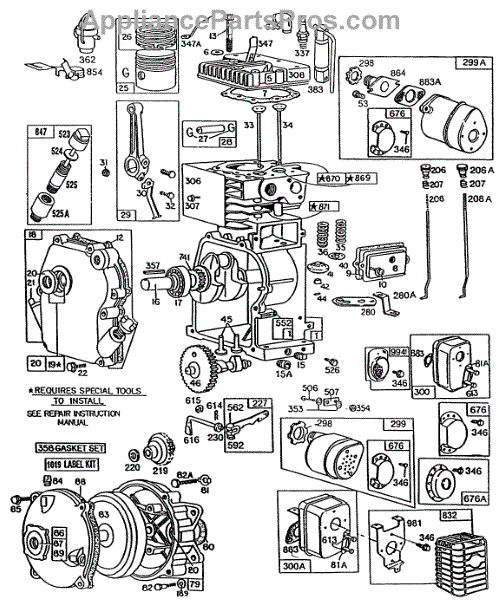 Parts for Briggs & Stratton 082252-2049-05: Cylinder, Piston, Mufflers Parts