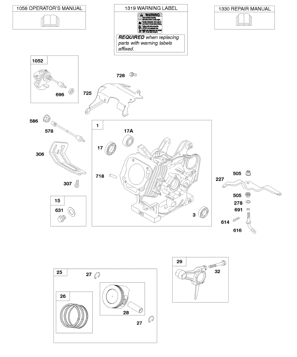 Parts for Briggs & Stratton 246435-0112-B1: Cylinder, Piston / Rings / Connecting Rod, Owner's Manual Parts