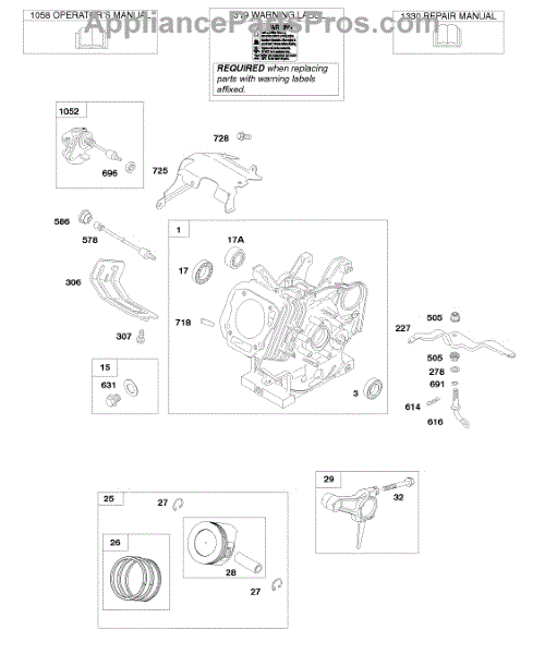 Parts for Briggs & Stratton 246437-0084-E9: Cylinder, Piston / Rings / Connecting Rod, Owner's Manual Parts