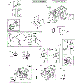 Parts for Briggs & Stratton 28P777-0644-A1: Cylinder, Piston / Rings, Breather, Engine Gaskets, Sump, Crankshaft, Cam, Counterweight Parts