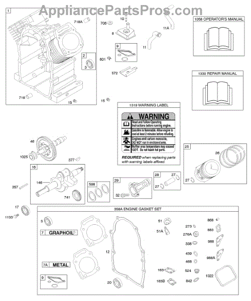 Parts for Briggs & Stratton 294447-1187-E1: Cylinder, Piston / Rings / Connecting Rod, Engine Gasket Set Parts