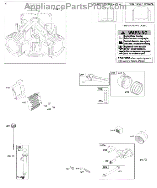 Parts for Briggs & Stratton 381777-0115-E1: Cylinder, Piston / Rings / Connecting Rod, Lubrication Parts